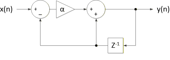 $$ y(n) = \alpha [x(n) - y(n-1)] + y(n-1) \qquad (15) $$